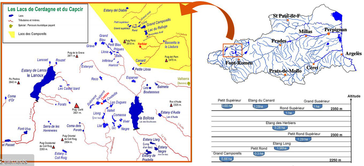 C’est le cas des lacs du groupe Camporells, situés au pied du pic Péric. Accessibles, entre autres, par Formiguères, il faut compter 1 h 30 de marche pour pouvoir leurrer les magnifiques truites fario qui ont élu domicile dans ces eaux limpides. La dizaine de lacs de ce groupe est peuplée uniquement de truites fario à la robe ponctuée de splendides tâches noires et rouges.